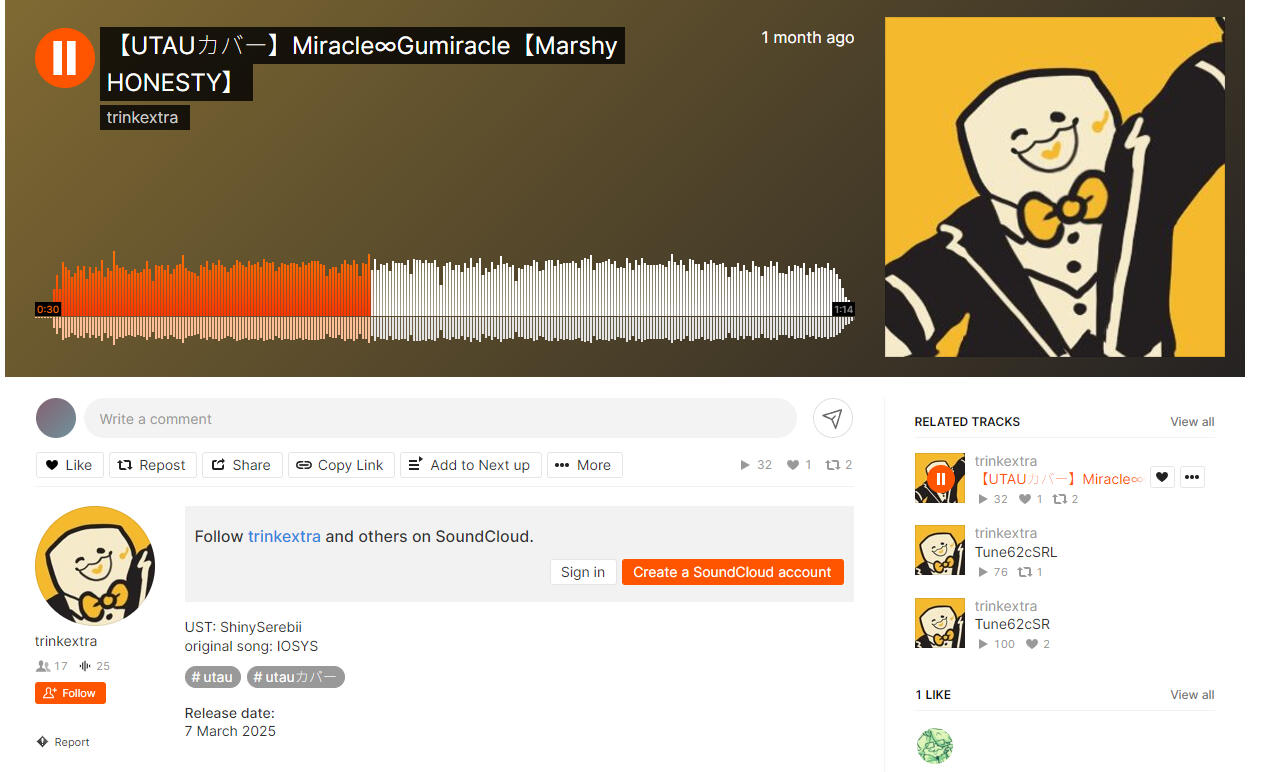 An exclusively audio format is valid if you just want to post your cover with no additional energy to spend.You can do this in places like Soundcloud, where the sharing is exclusively for audio.(For this and all other formats, proper credit of the ppl behind the music/UST is heavily encouraged!)