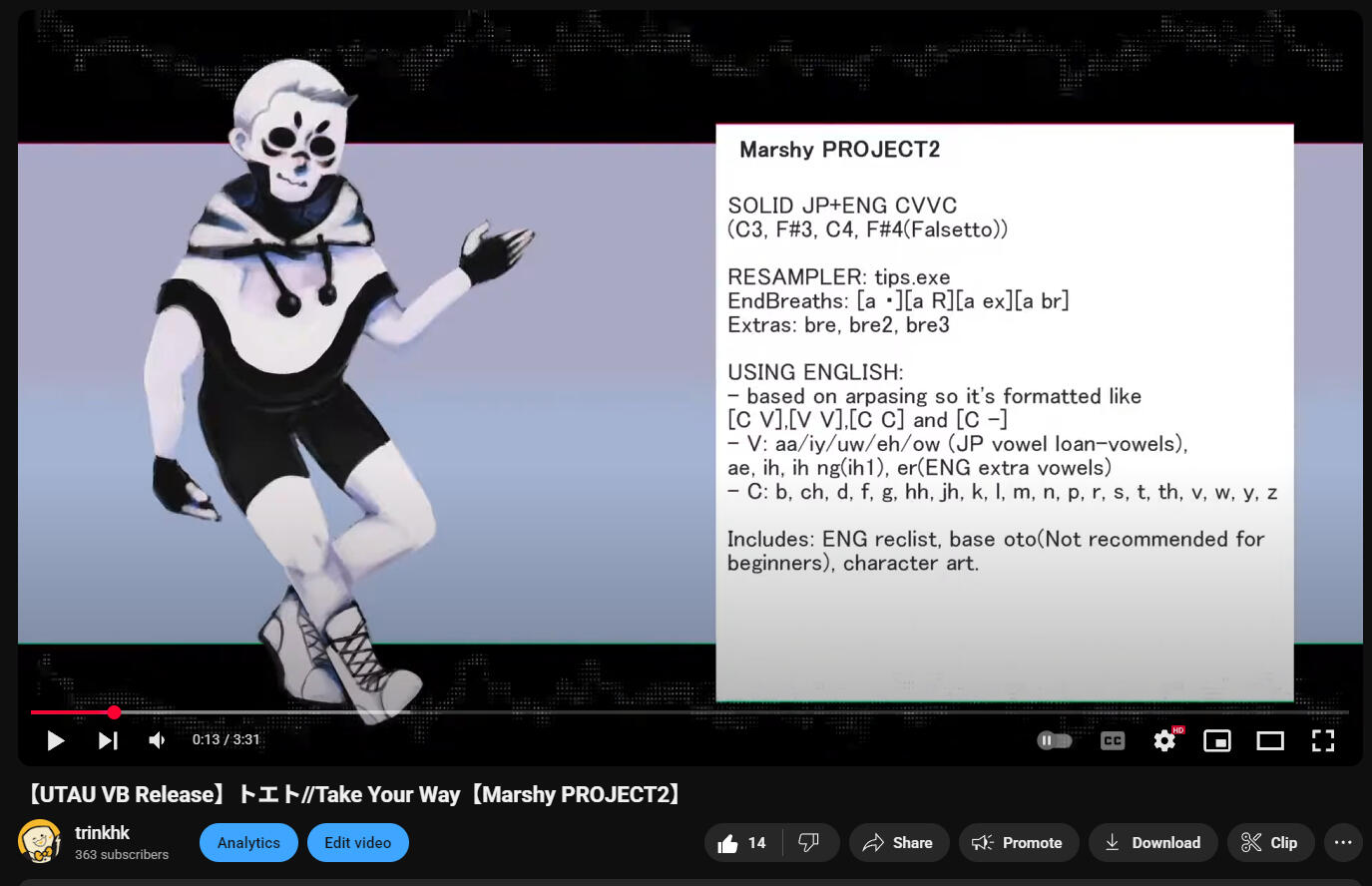 (This is where Video Editing Software becomes necessary.)Assorted Image videos are where you assemble a standing image, a background, some borders, and an 'explanation' square giving you the details of the cover... or the singer!!This style of MV is often used in Voicebank Release videos, but this is NOT the only way to release your UTAU voicebanks on Youtube.