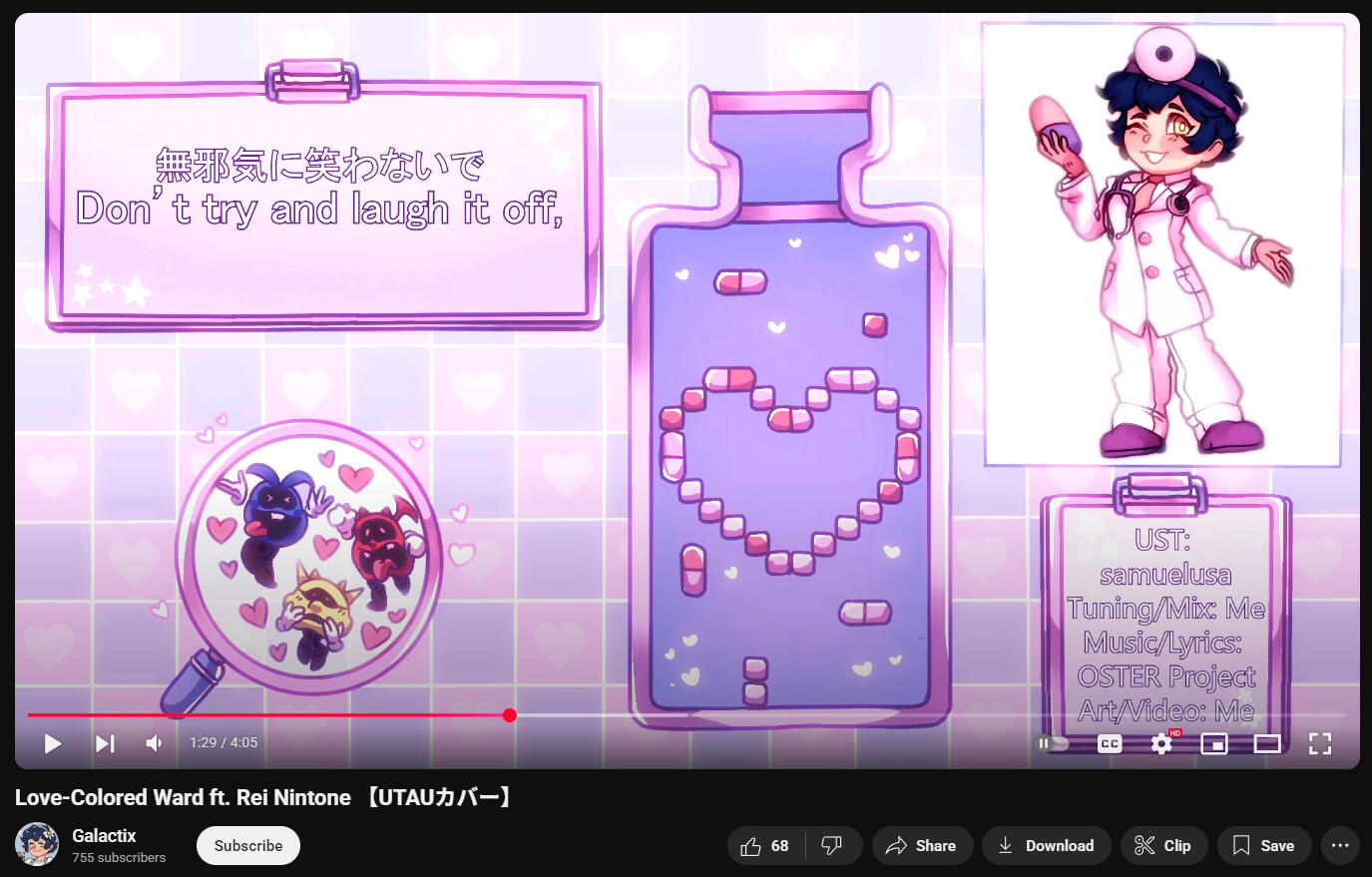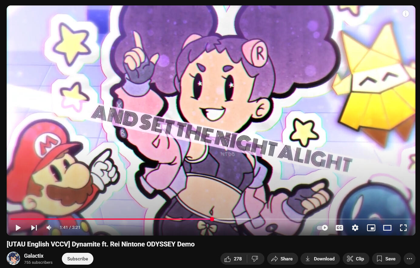 This is what I believe is the 'final' level of publishing your covers...Full-on Music Videos.This is where you get as creative and engaged in your video as you possibly can, using your art skills, all of your software, as many assets as you can make or collect... and a dream!Galactix/@StarDroid01's youtube videos are a perfect example! Her MVs span multiple styles with the capacity to hold immense ambition, from animations to motion graphics! These can serve as some good inspiration for the future!!